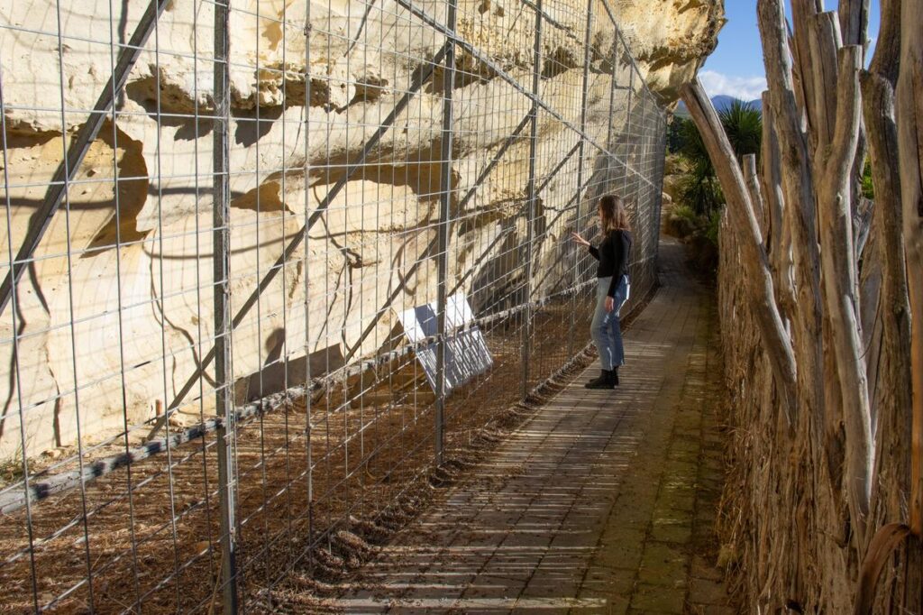 Another limestone shelter in the valley posed as the strategic position for warning against strangers, predators and bad weather. Now the walls contain charcoal and kokowai (red ochre) drawings, depicting forms such as birds, animals and people as well as depictions of European sailing ships and animals.