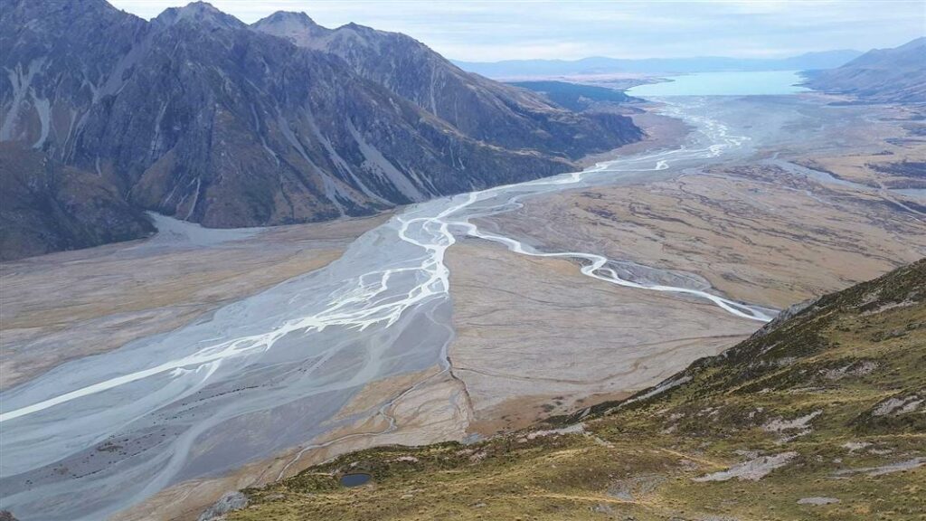 The Waitaki braided river is characterised by gravel beds, numerous channels and variable flows, which are unique to parts of the world with young, rapidly eroding mountains. The upper part of the Waitaki Basin was formed thousands of years ago when glaciers retreated, leaving behind beds of gravel and boulders.